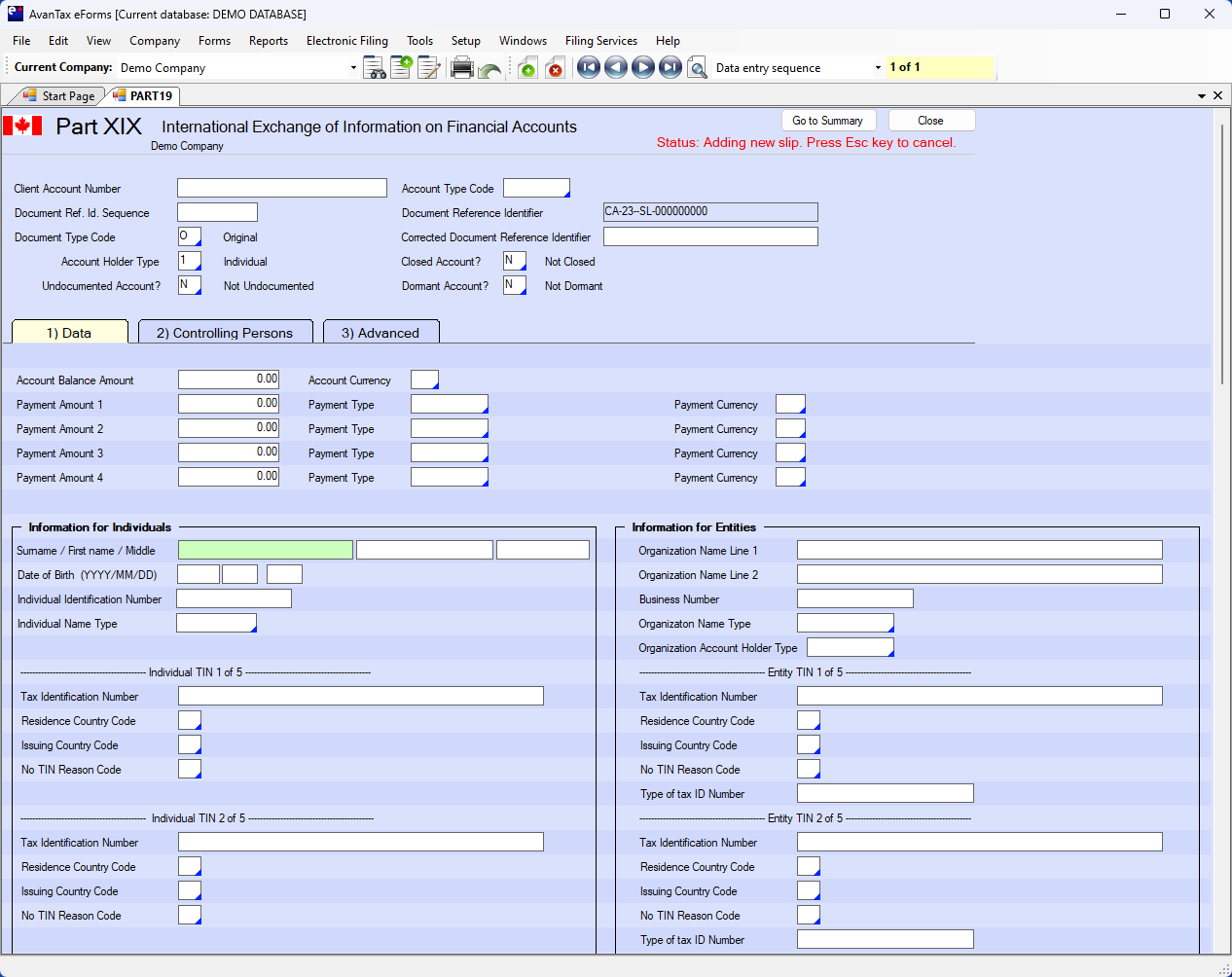 Part XIX is available as an add-on module for AvanTax eForms Enterprise.