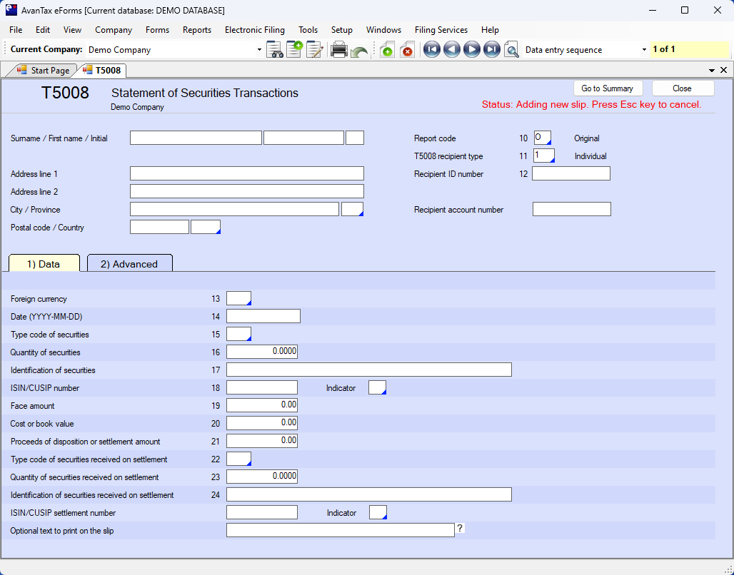 - Print T5008 slips and summaries on plain paper or CRA forms