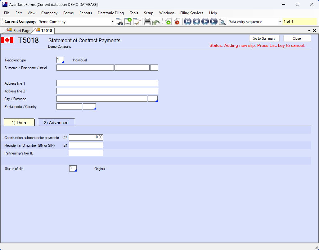 Here's how the AvanTax eForms software can help you prepare your T5018 return: