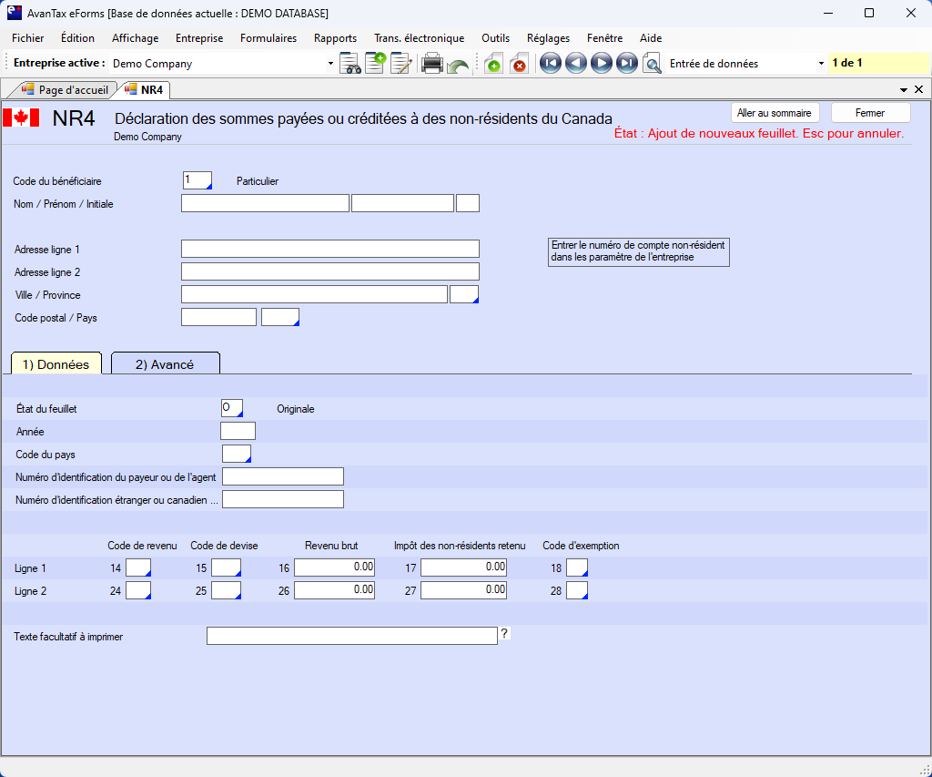 Voici comment le logiciel AvanTax eForms peut vous aider à préparer votre déclaration NR4 :