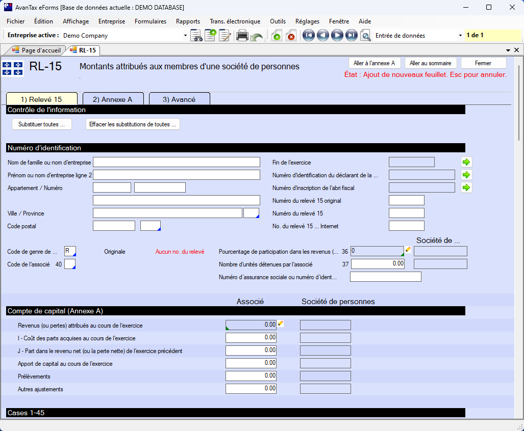 Voici comment le logiciel AvanTax eForms peut vous aider à préparer votre déclaration Relevé 15 :