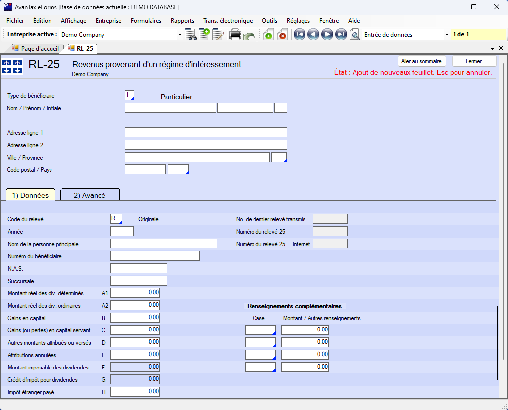 Voici comment le logiciel AvanTax eForms peut vous aider à préparer votre déclaration Relevé 25 :