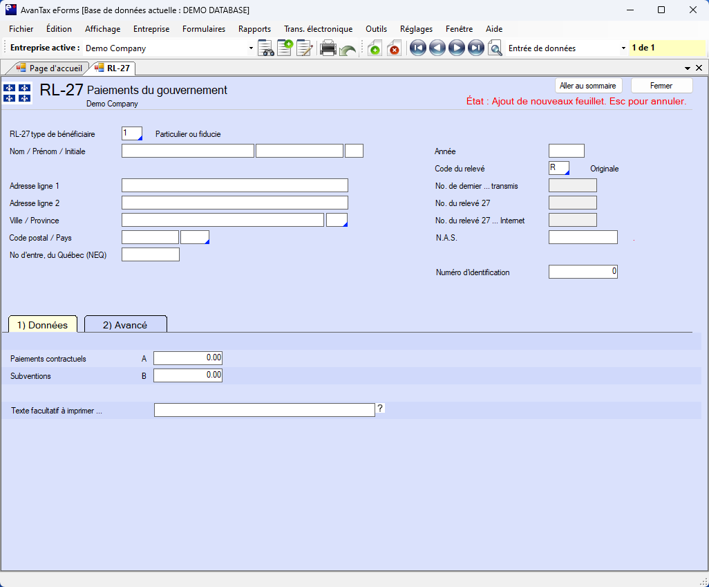 Voici comment le logiciel AvanTax eForms peut vous aider à préparer votre déclaration Relevé 27 :
