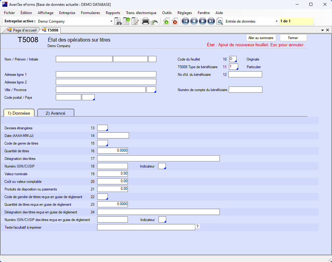 Voici comment le logiciel AvanTax eForms peut vous aider à préparer votre déclaration T5008 :