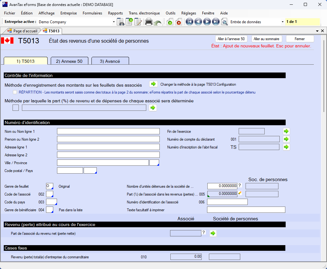 Voici comment le logiciel AvanTax eForms peut vous aider à préparer votre déclaration T5013 :